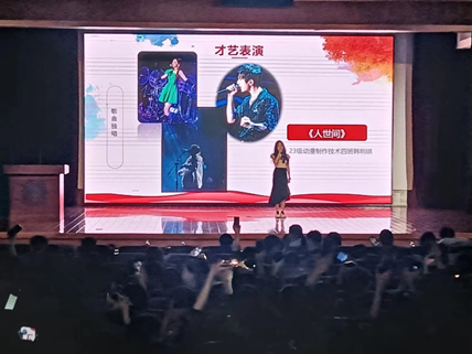 新生代表韩圳琪同学演唱的《人世间》,细腻的歌喉和动情的演唱感动着现场的每一个人。
