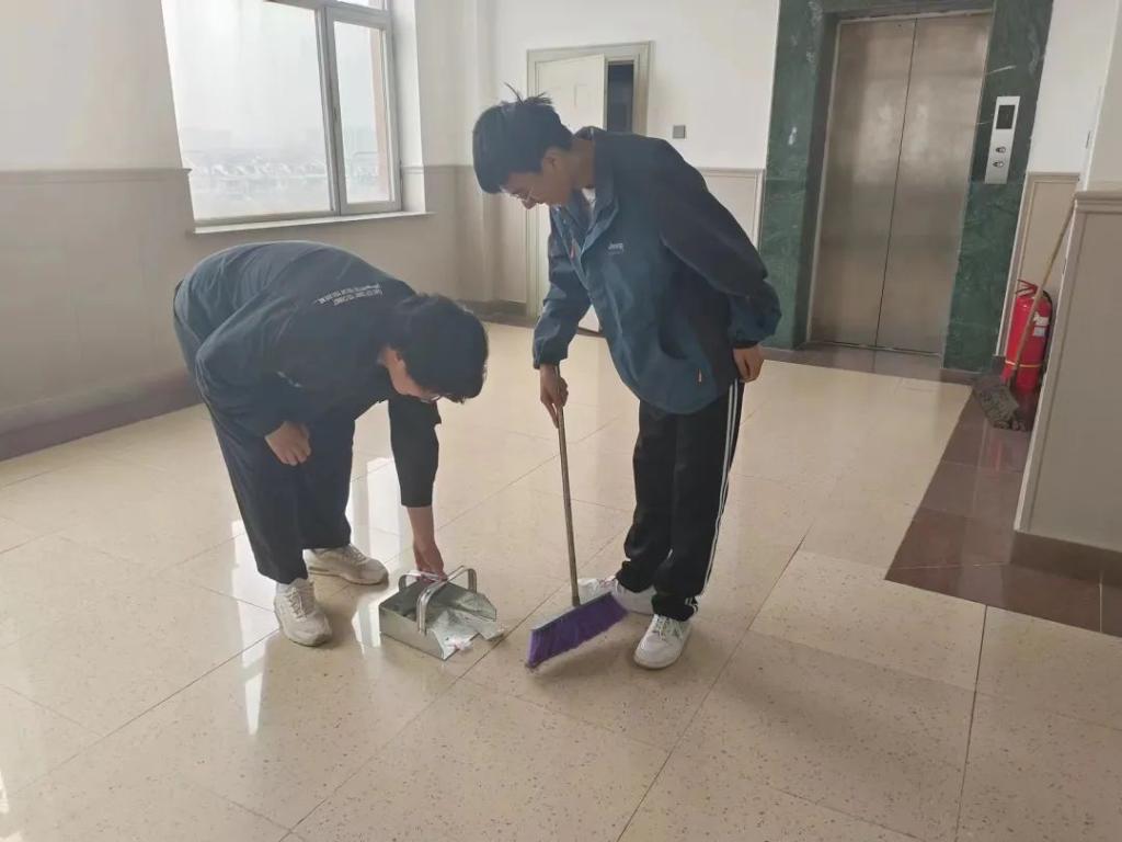 yl23455永利集团团委组织学生们对教学楼、公寓楼的公共区域进行了全面清扫,引导学生自觉维护校园环境,提升公共服务意识,践行劳动精神。