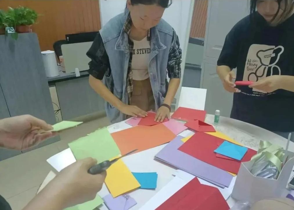 一句句朴实的话语,一笔笔工整的文字,都是爱的凝聚,学生们将卡片制作成一张张精美的贺卡,由学生代表将贺卡送给每一位老师,表达他们发自内心的祝福。