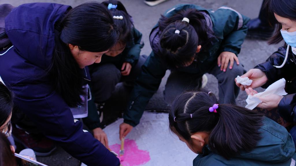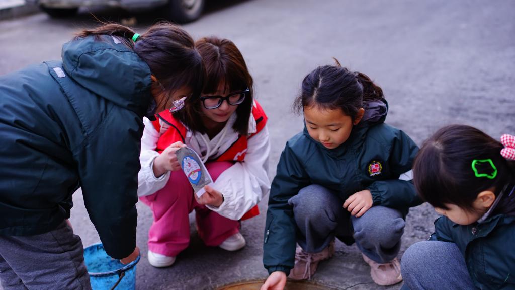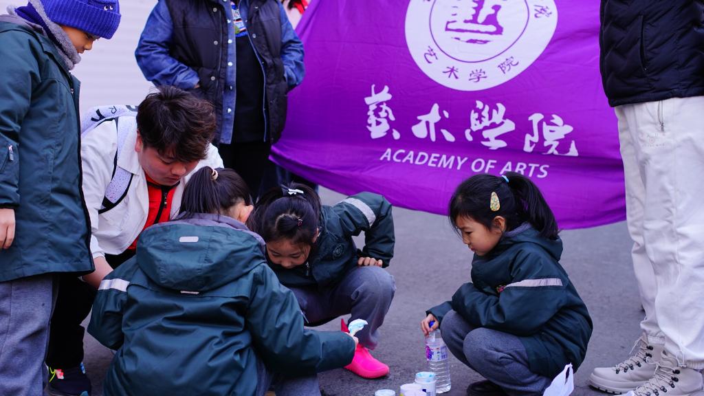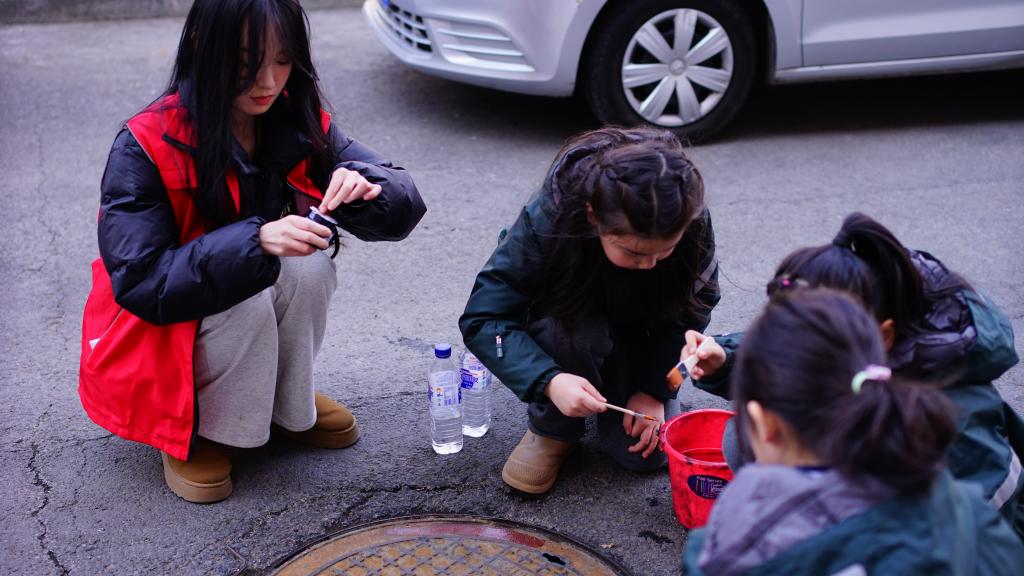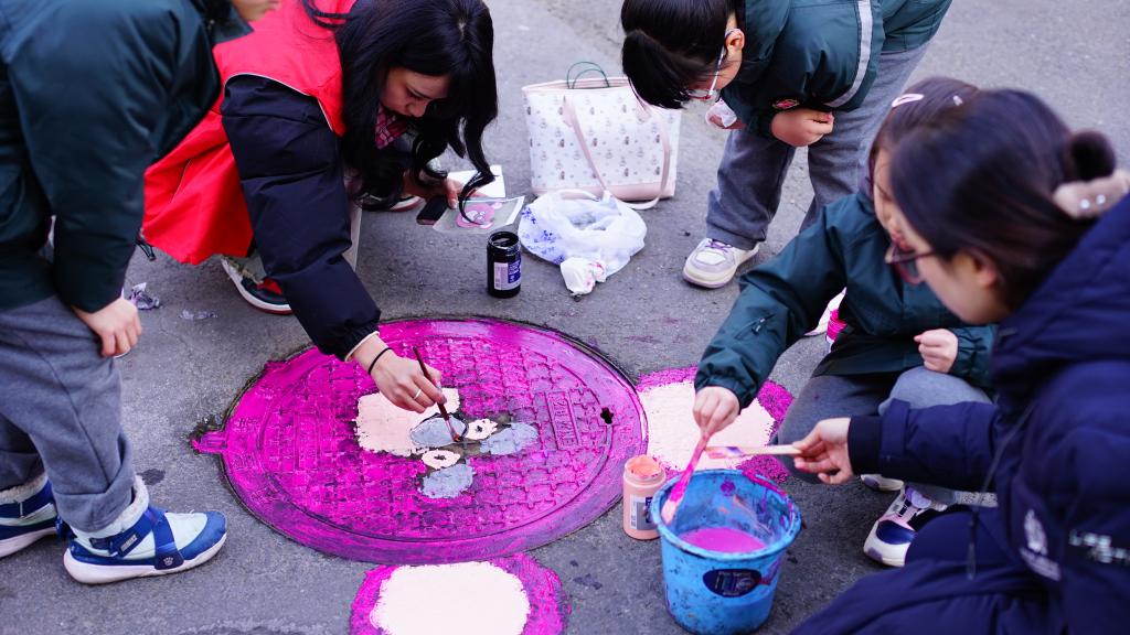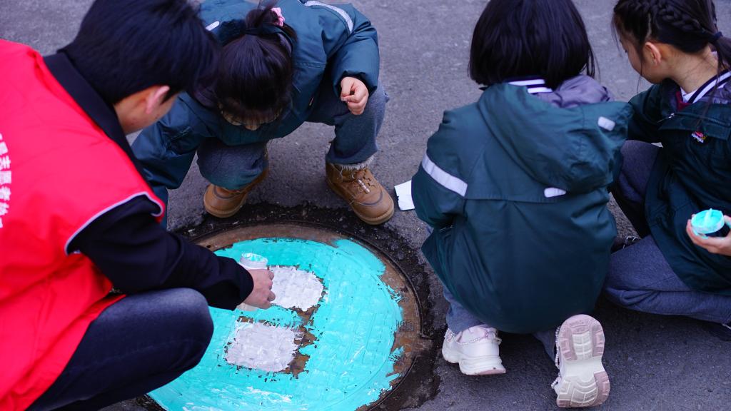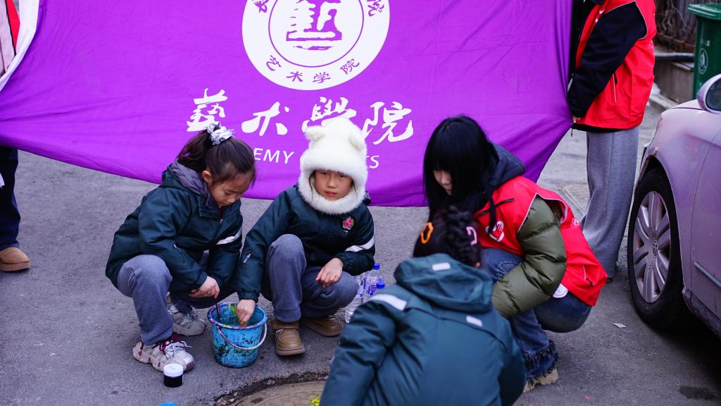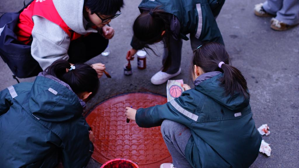 活动当天,yl23455永利集团副院长王硕菲、学生科副科长王欢带领15名大学生志愿者和长春南湖实验中海小学的学生们齐聚小区,共同为小区井盖“井上添花”,焕发“新颜”。