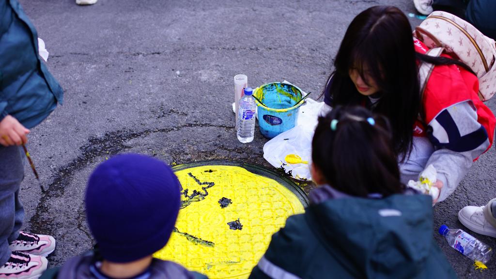 活动现场氛围热烈,我们的志愿者化身“小老师”,耐心指导小朋友们进行井盖绘画创作。孩子们手握画笔,积极热情、全神贯注地描绘心中的美好图景。在大家的共同努力下,一幅幅精美的画作逐渐呈现,既有鲜活生动的卡通形象,也有对文明城市的美好憧憬,让“我也是雷锋”的理念入脑入心,青年学生们在指导中也深化了责任担当意识,将志愿精神转化为知行合一的实践能力,为文明城市建设注入青春力量。