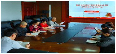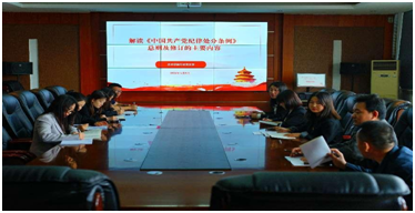 在学习过程中,班子成员王硕菲、徐琨两位副院长和三名支部书记郭宁、苏立鹏、李京泽,通过领读《中国共产党纪律处分条例》中的各项规定,用典型案例警示教育党员干部,让党员干部在案例中深刻领会《中国共产党纪律处分条例》的重要意义,引导党员干部要时刻绷紧“纪律弦”。